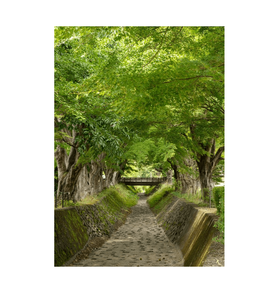The leaves on the Japanese Maples lining Maple Corridor dazzle in vibrant greens at Lake Kawaguchi, Japan.
