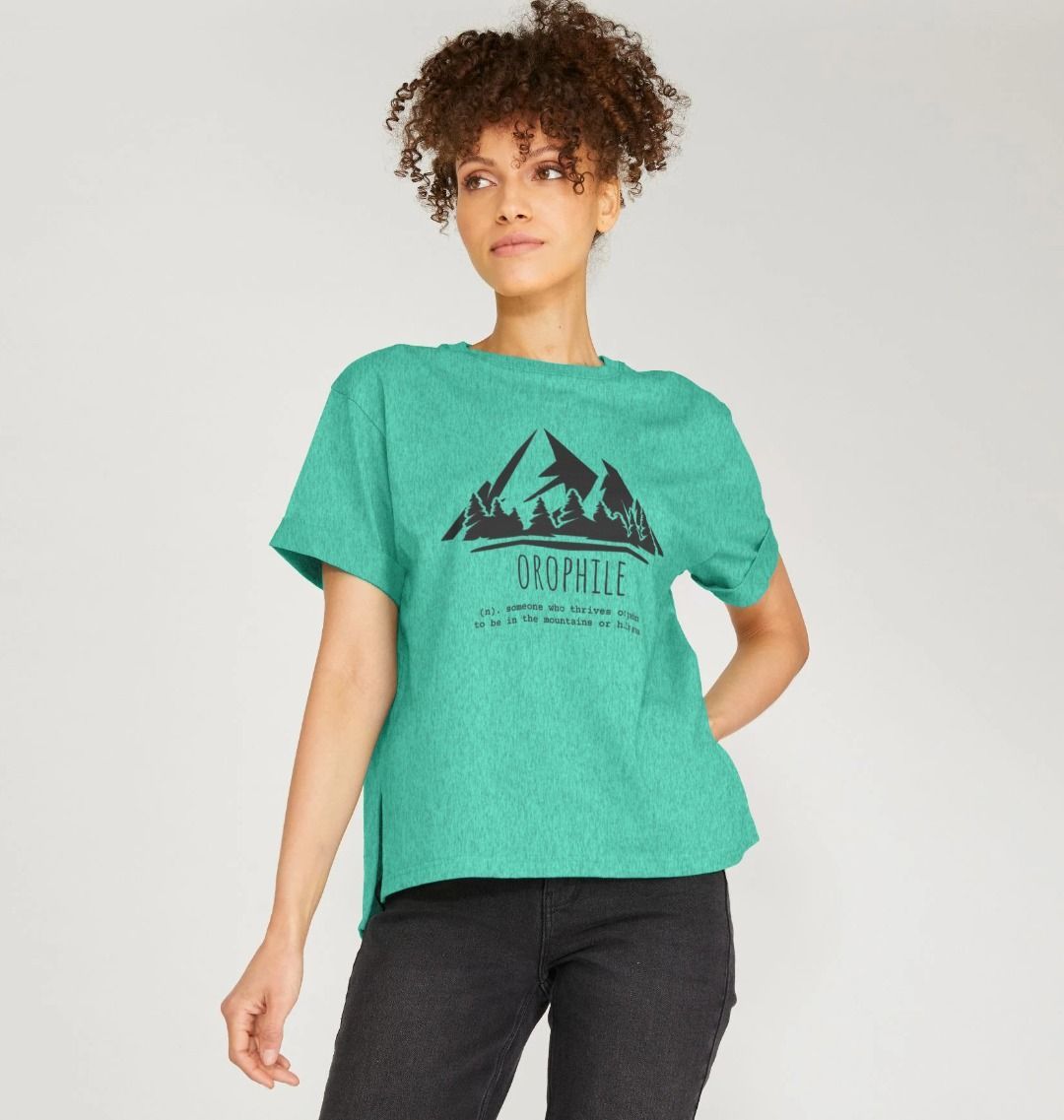 Are you an orophile? Me too! Tell the world you love mountains with this relaxed fit tee made with a mix of recycled cotton and certified organic cotton.