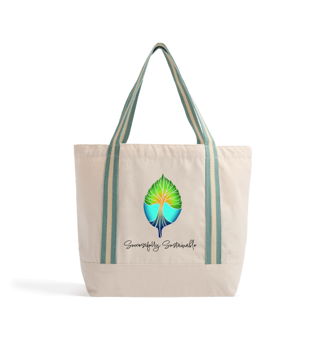Support our brand and carry all you need for the beach, a picnic, or a day out in this hard-wearing certified organic cotton bag! Signature contrast striped handles are made from soft cotton webbing for optimum comfort.